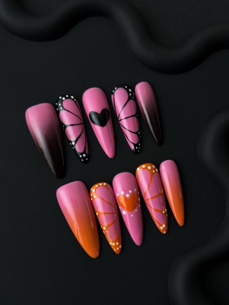 Wujasmine Press on nails Pink Butterfly