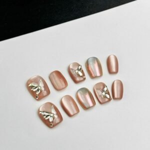 Embrace the delicate charm of “The Butterfly Lady,” a design that celebrates the grace and beauty of butterflies. Featuring soft, pastel hues and intricate butterfly embellishments, this look is perfect for those who love a feminine, whimsical touch. Ideal for springtime events, garden parties, or any occasion where you want to feel light and airy, the shimmering accents add a touch of magic to your fingertips.